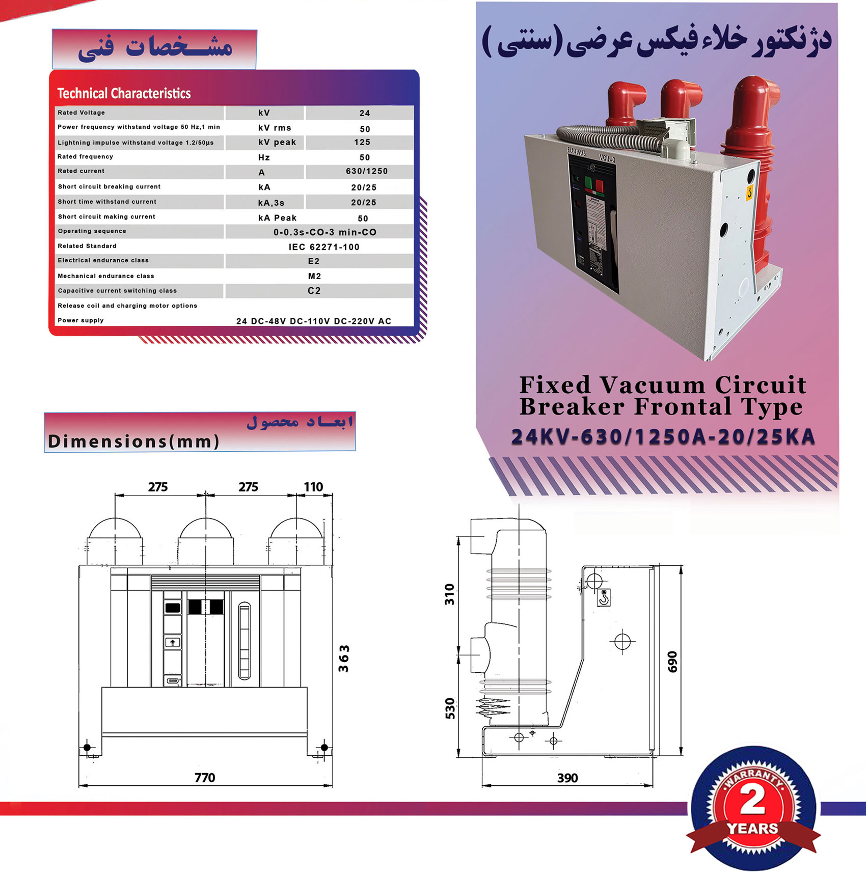 • دارای دو سال گارانتی بدون قید و شرط و بیست سال خدمات پس از فروش