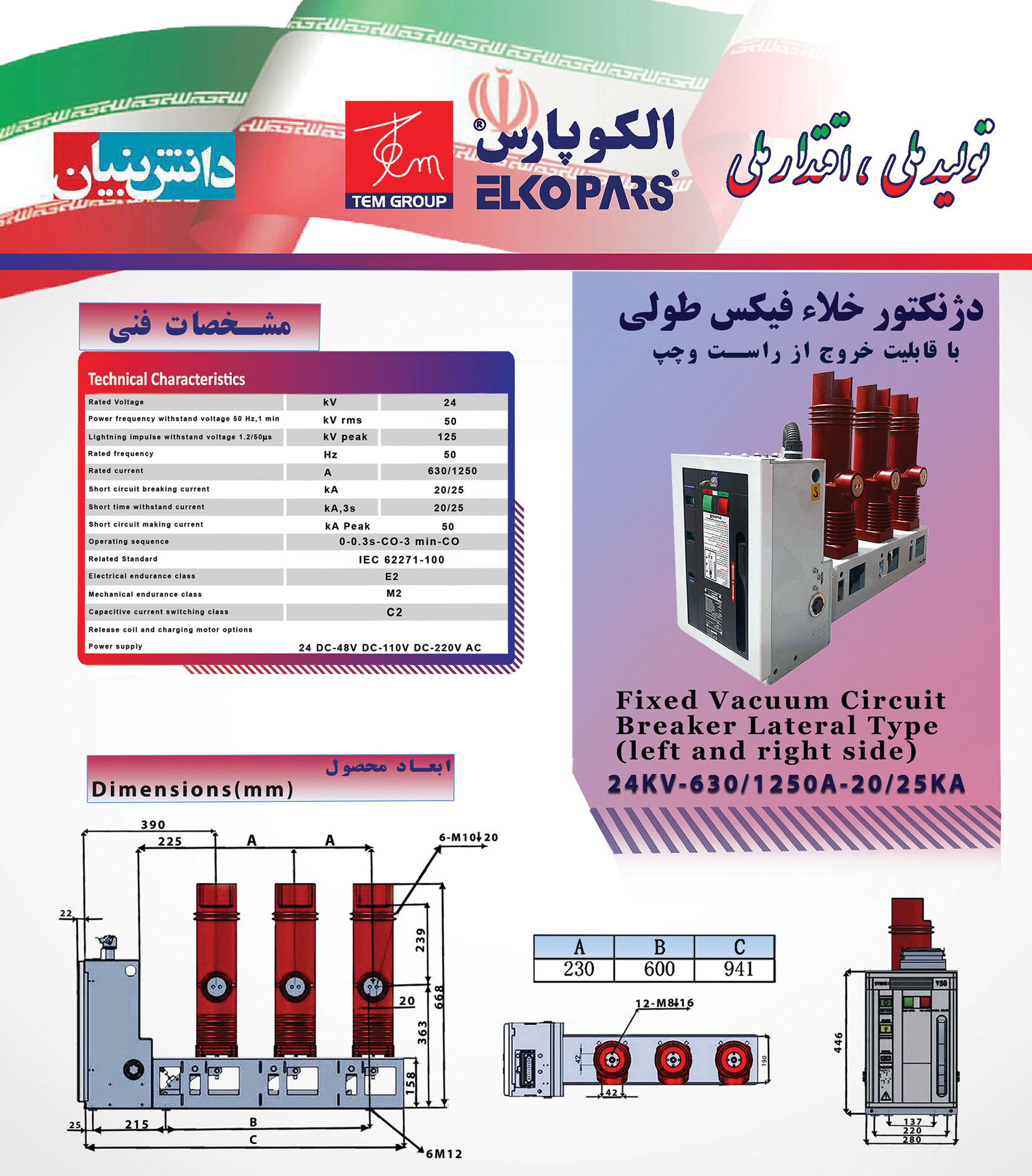 • قابلیت ۱۰۰۰۰ بار قطع و وصل در جریان نامی و ۱۰۰ بار در جریان اتصال کوتاه